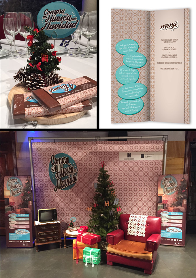 El inicio de la campaña está marcada por la celebración de la Gala Navideña, una cena que se convierte en un encuentro entre los asociados. Para que el sentimiento familiar y hogareño cale en cada rincón, el menú fue elaborado con productos oscenses y los asociados se encontraron el las mesas con el “turrón de la H”, con un gran contenido en “desarrollo local”. Además, los adornos navideños, un ambiente familiar, un monólogo sobre el consumo en Huesca, animación… fueron elementos clave para transmitir el mensaje principal de la campaña.