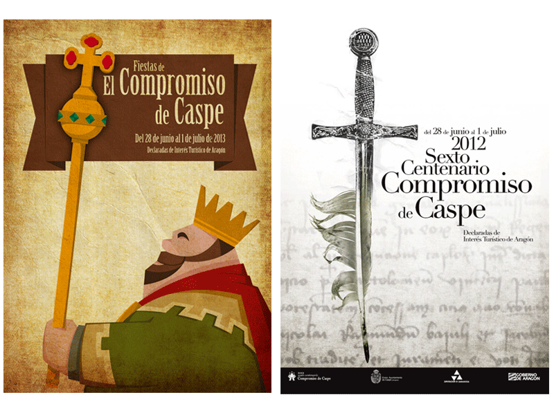 Por tercera vez consecutiva, Veintiocho Estudio Creativo ha sido el encargado de realizar este año el cartel de la Conmemoración del Compromiso de Caspe. Como todos sabemos, estas fiestas, declaradas de interés turístico de Aragón son unas de las más importantes de la provincia, y recrean durante tres días el compromiso por el cual Fernando I (abuelo de Fernando el Católico) fue elegido Rey de la Corona de Aragón.